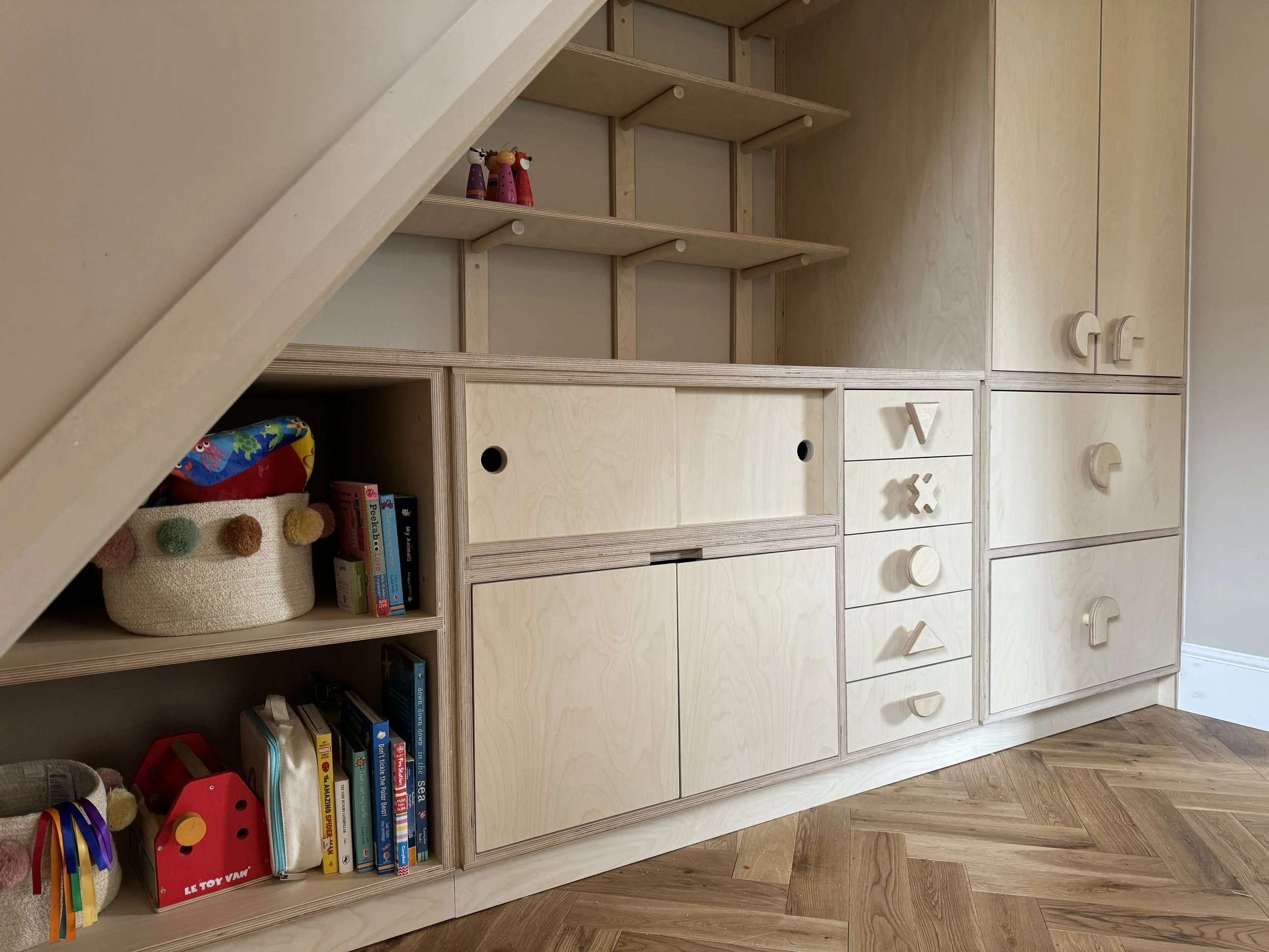 We specialise in Baltic birch plywood known for its stunning look and feel when sanded and oiled. This versatile material complements any living or work space. Alongside this, we explore recycled and up-cycled materials for unique styles and finishes and use Valchromat to craft bold, colourful statement pieces while maintaining clean designs. We also work with traditional timbers, tailoring every choice to your needs.